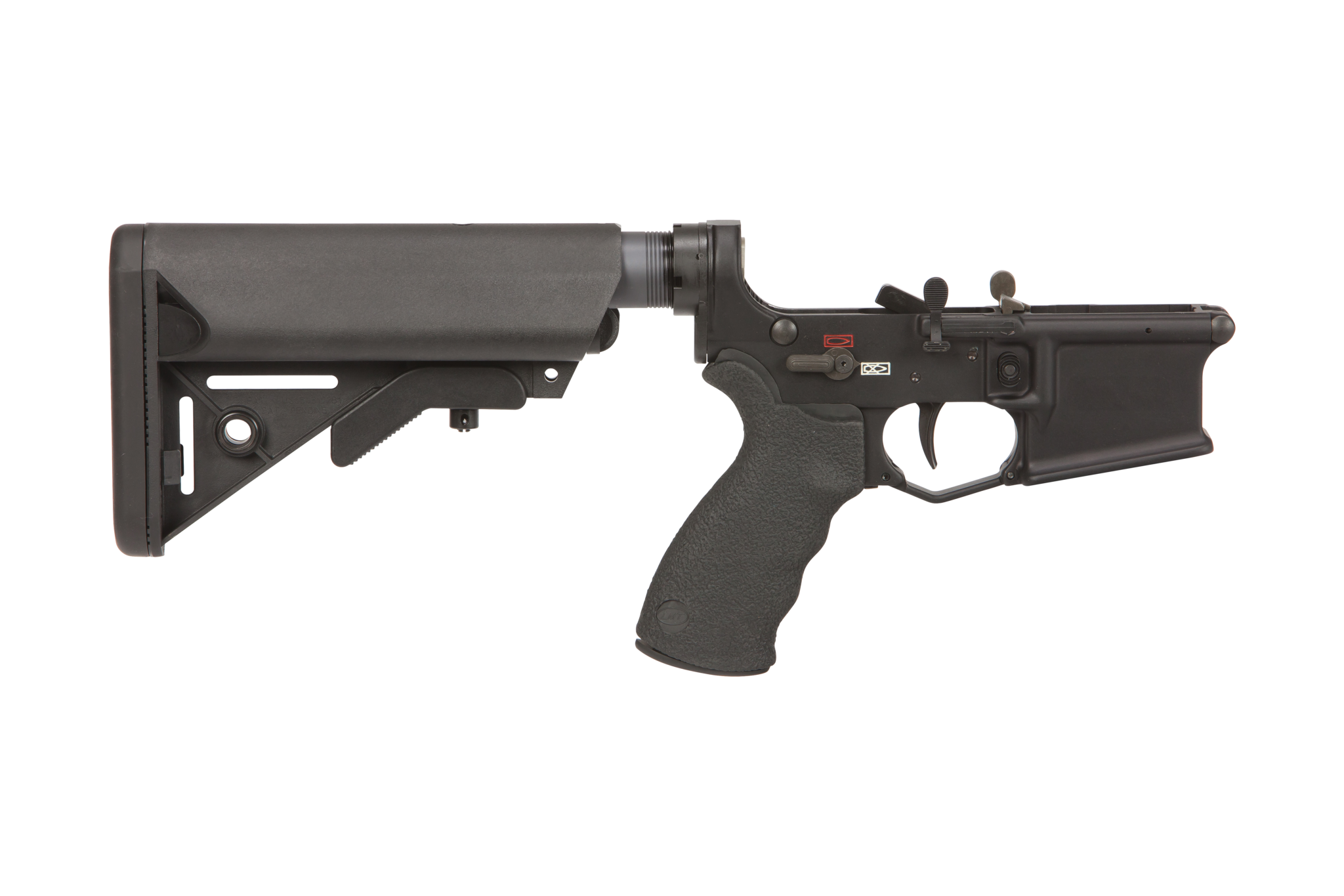 This lower receiver is designed with several unique LMT® features to further enhance its durability and versatility. These features are: Two-stage trigger group, winter trigger guard, ergo grip, QD endplate, and SOPMOD buttstock.